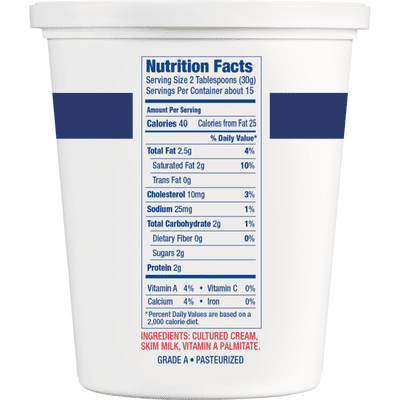 Sour cream is endowed with a lot of nutritional values in its appropriate proportion that your. Sour cream Nutrition Facts Sour cream imitation cultured 100 grams of Sour cream contain 663 grams of carbohydrates is fiber-free 24 grams of protein 102 milligrams of sodium and 7115 grams of water 100 grams of Sour cream contain 208 calories the 10 of your total daily needs. Sour cream foods Daily values are based on 2000 calorie diet and 155 lbs body weight Actual daily nutrient requirements might be different based on your age gender level of physical activity medical history and other factors.