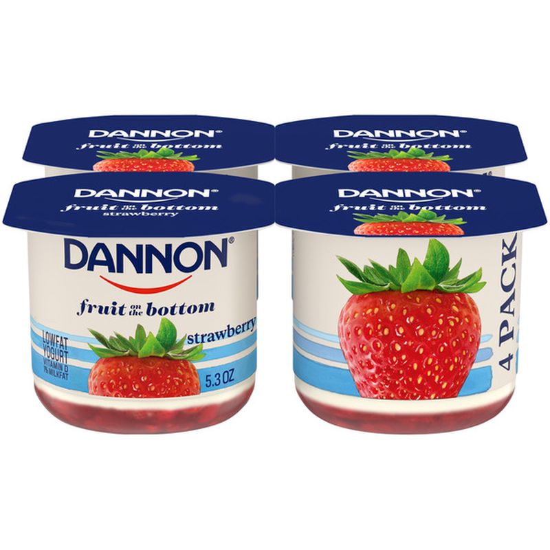Dannon Blueberry Fruit On The Bottom Lowfat YogurtSince 1942Vitamin D added 1 milkfatGrade A99 fat free6 oz 170g. Brand Dannon has reinvented our classic lowfat yogurt making it better than ever The new Brand Dannon is made with creamier yogurt delicious fruit and quality ingredients. Fruit on the Bottom combines the taste of fruit with our classic lowfat yogurt recipe.