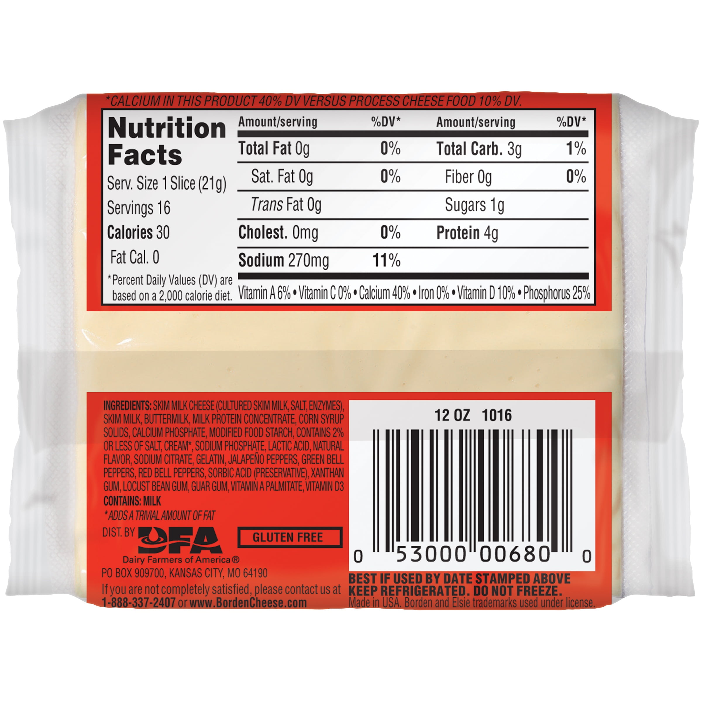 16 - 34 oz slices. 94 181Ounce Get it as soon as Wed Jul 7. Borden Fat Free Pepper Jack Cheese Singles 16-075 oz.
