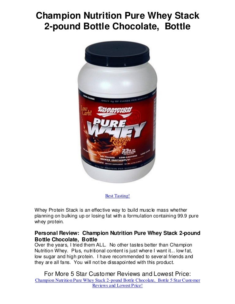 5 Zeilen Stack combine with a number of performance specific Champion Nutrition products to increase. Click here for the best deals for C hampion Pure Whey Protein Stack. Pure Whey Protein Stack offers you an ideal and economical way to boost your daily protein intake.